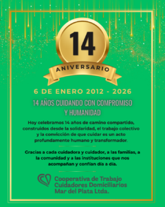14° Aniversario de nuestra Cooperativa de Cuidadores Domiciliarios Celebramos 14 años de trayectoria en Mar del Plata, construyendo una cooperativa