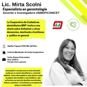 🧠 Charla abierta sobre Alzheimer y otras demencias La Cooperativa de Cuidadores Domiciliarios Mar Del Plata invita a participar de